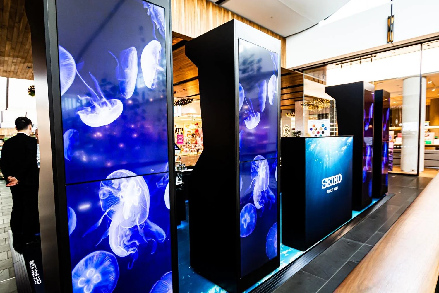 Consisting of moody toned graphics, eye-catching animations and a contemporary collection of Black display units, the DisplayWise build was developed down to the detail to ensure the Seiko creative concept was brought to life in its tangible form.