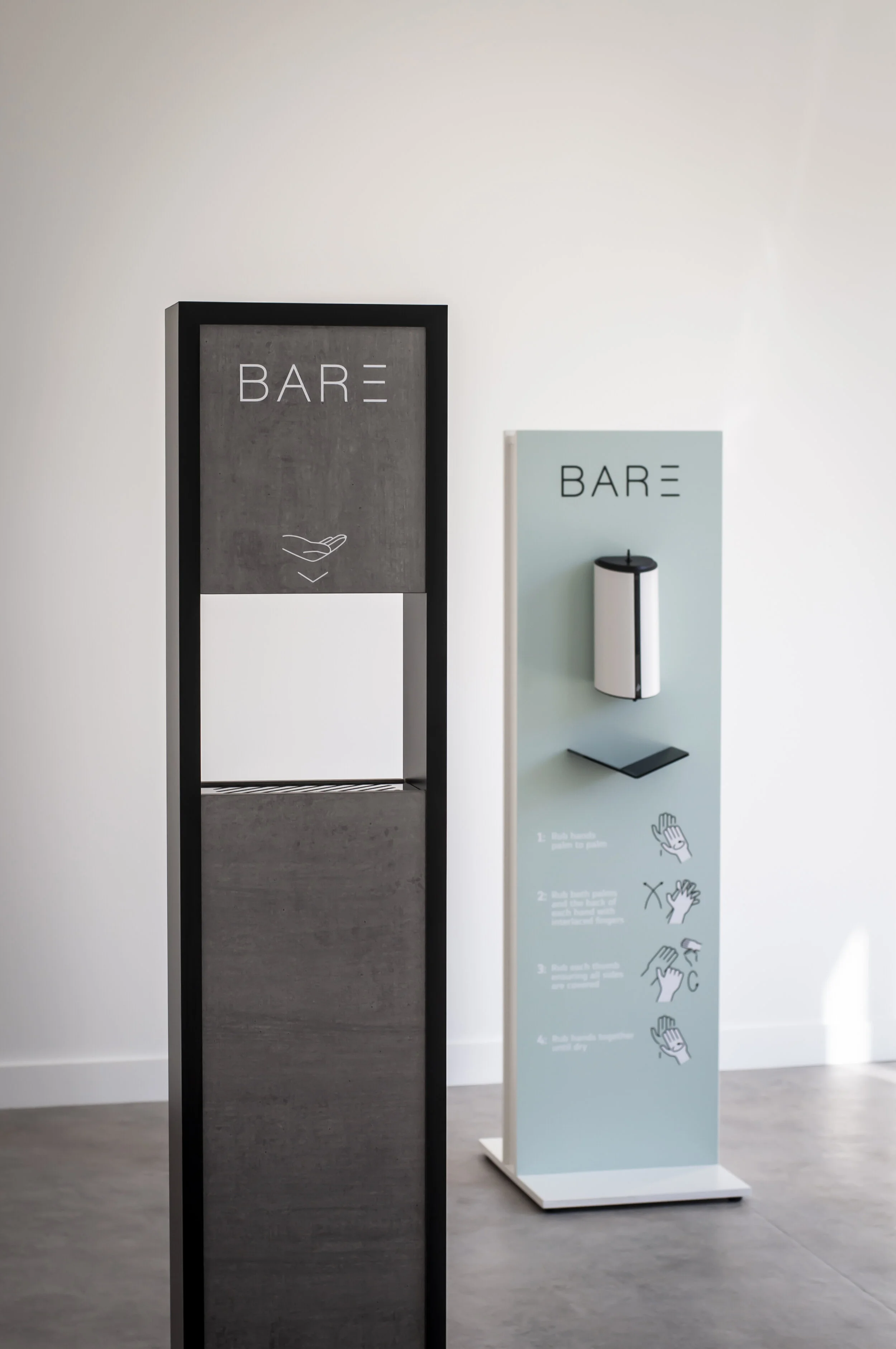 “BARE Hygiene provides these businesses with a far superior option as opposed to a bottle of hand sanitiser on a counter. We have given them the choice of several aesthetically striking designs that can really complement their space.” Cachia added.