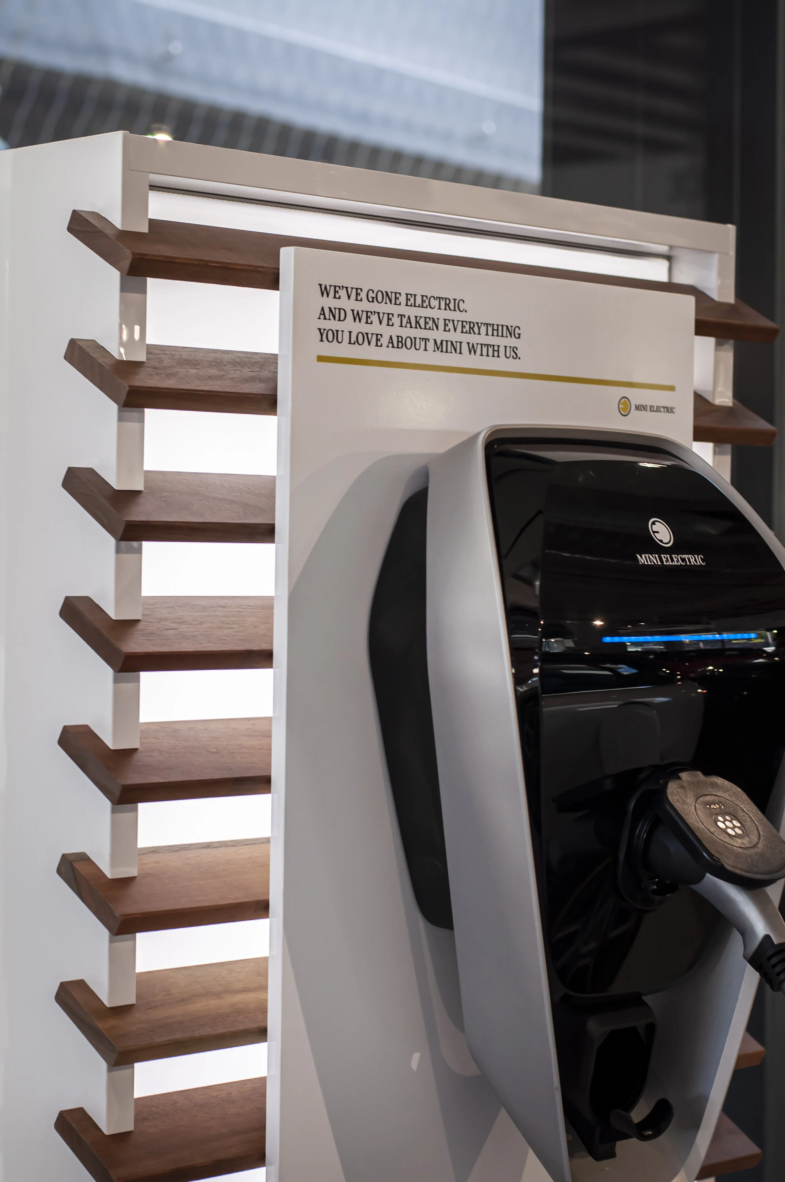Whilst its primary intention was for display purposes, the solution developed would also ensure the MINI Electric charging units could feature in the showroom in their full operation.
